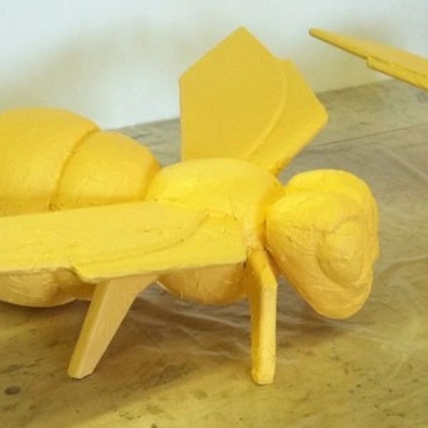 175 bees! Hand carved out of styrene cast and covered in paper mache then painted with a matte finish.